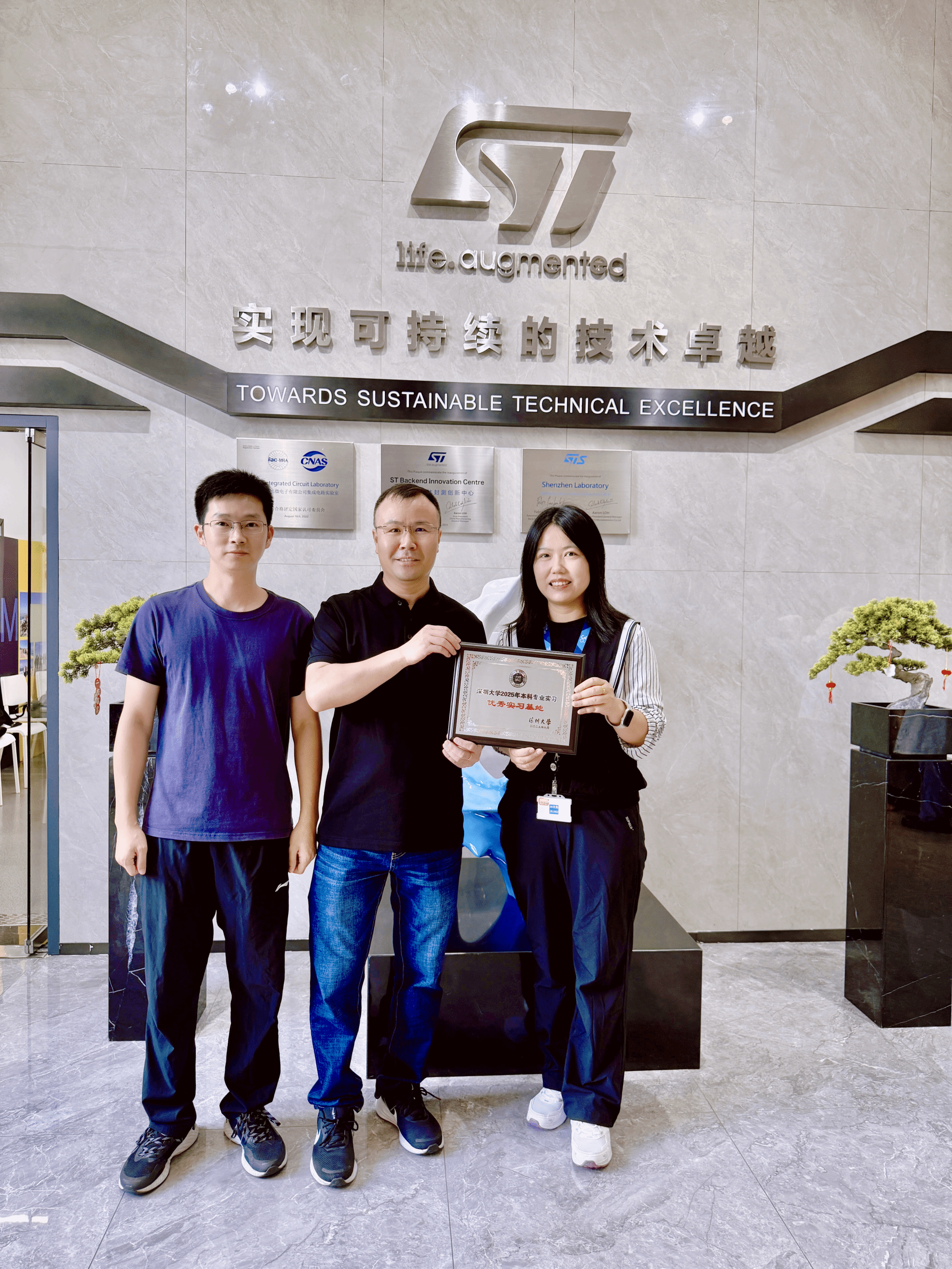 2025年本科专业实习—优秀实习基地”奖牌。赛意法公司表示,培养半导体人才是企业应尽的社会责任,未来将持续为深大学生提供实践平台,共同推动本土半导体技术创新发展。