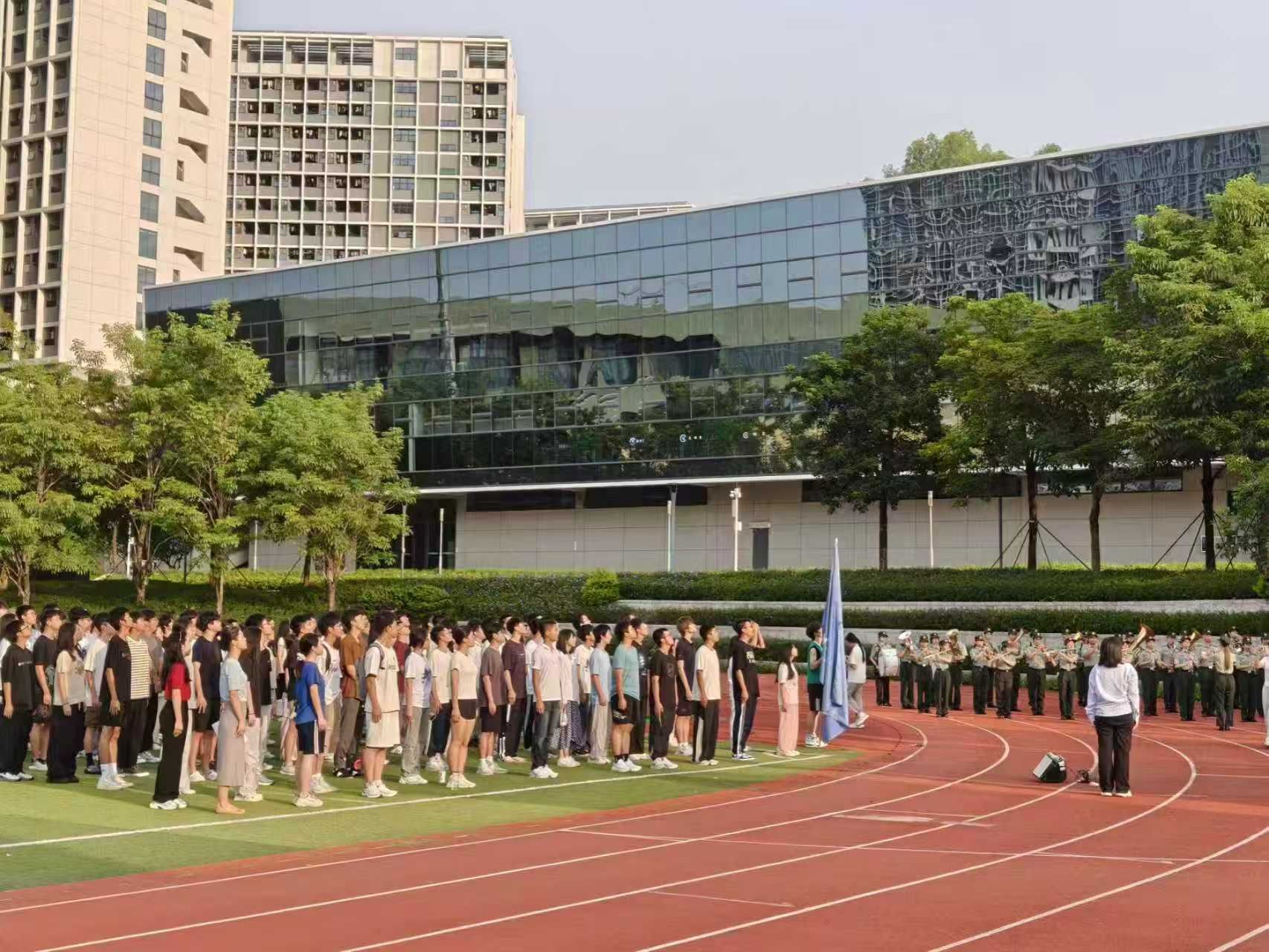 在丽湖校区至快体育场举行“青春与祖国共奋进”主题升旗仪式暨“强国复兴有我”主题党(团)日教育活动,庆祝中华人民共和国成立76周年。学院团委书记周艳、团委副书记夏君怡及200余名学生共同参与。