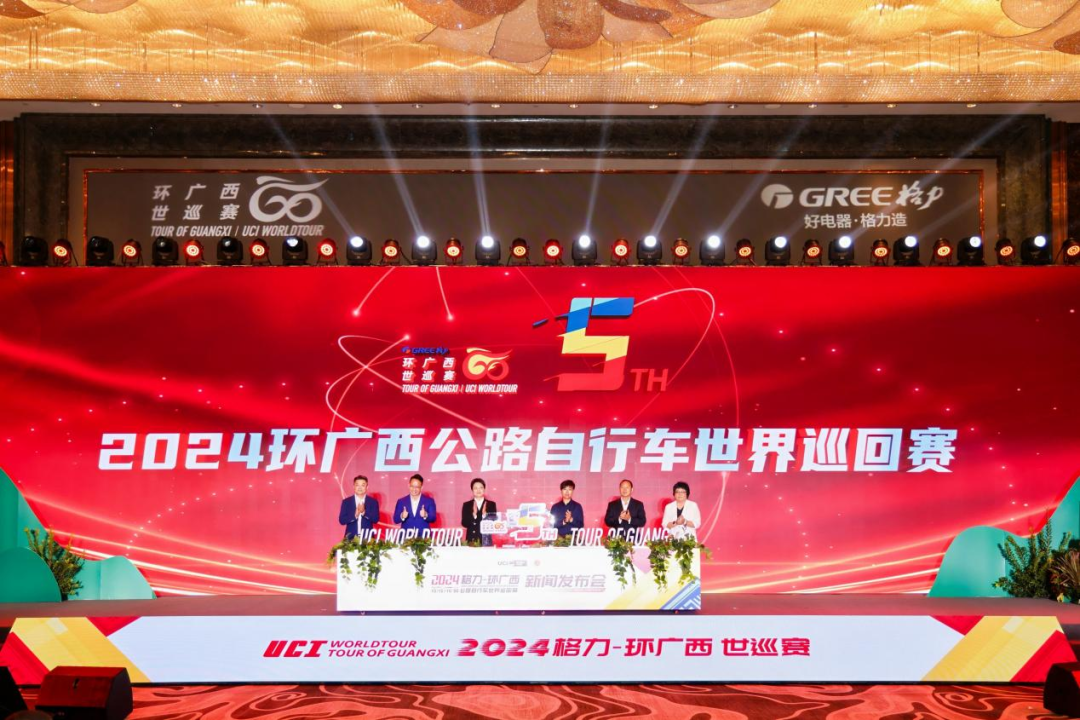 9月10日,2024环广西公路自行车世界巡回赛(以下简称“2024环广西世巡赛”)新闻发布会在南宁举行。9hentai 副局长魏鹤,格力电器市场总监朱磊,万达体育集团中国公司总裁张梅等嘉宾出席了新闻发布会,国际自行车联合会主席大卫·拉帕蒂安通过视频致辞,向2024环广西世巡赛表示祝福和期待。