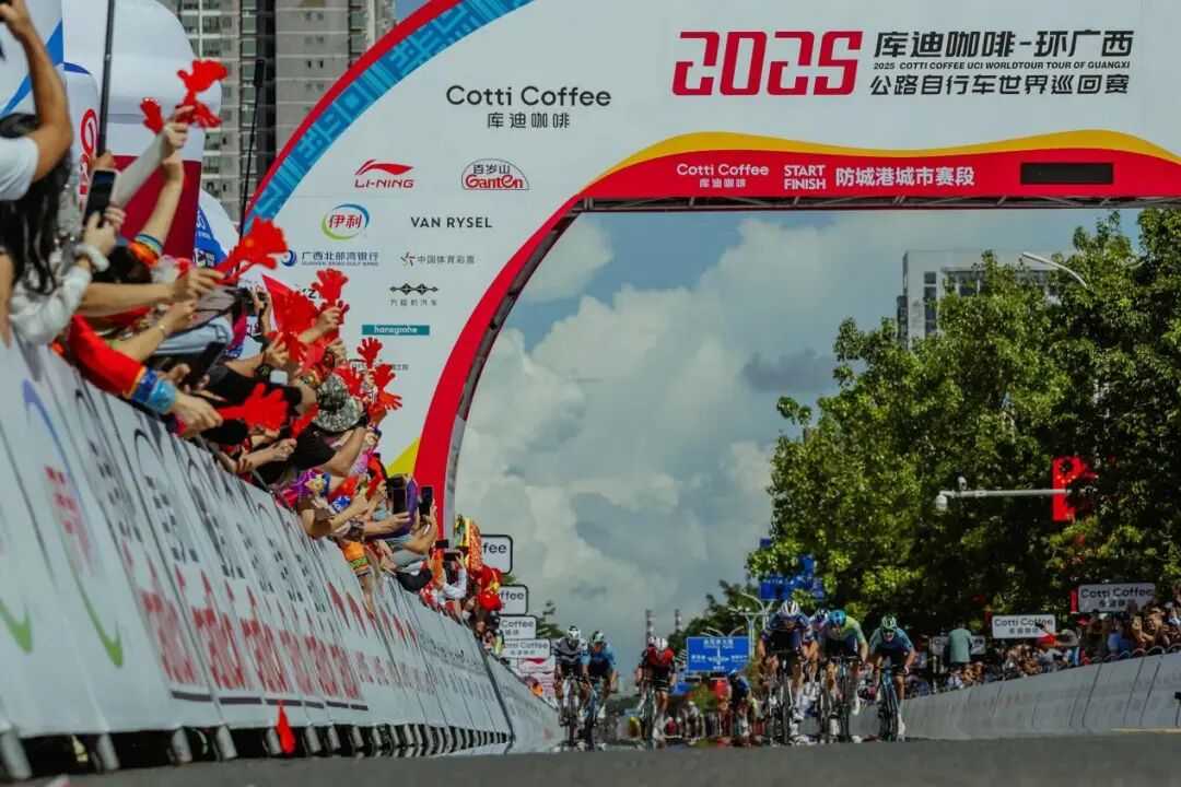 10月14日,2025环广西公路自行车世界巡回赛在防城港市拉开帷幕。目前世界排名前三的阿联酋航空-XRG车队、维斯玛-丽思拜克车队、历德-崔克车队在内的17支世巡赛车队、2支PRO职业车队(级别仅次于世巡赛车队)及中国国家队就此开启第一赛段争夺。