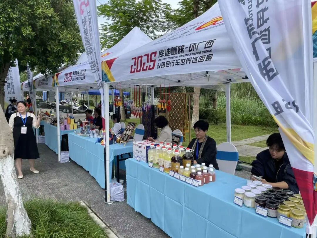 百色市依托边关风情和民族文化,打造“游购娱”一体化的消费体验,开展“‘百香百色’特色产品进酒店、进超市”活动,在重点超市、酒店集中优惠展销名优特产,开展主题线上促销活动;进行“骑遇百色·乐购红城”消费券促消费活动,发放“商超百货”“餐饮”消费券,立享“满200元减50元”等优惠,让游客在畅游红色福地、体验多彩民族风情的同时,享受实实在在的购物与美食优惠。借势赛事流量,百色市还在比赛现场设置“桂品出海助力行动——靖西展位”,集中展示靖西壮锦、凌云茶叶、靖西大香粽等特色农副产品,吸引游客驻足品尝与购买。