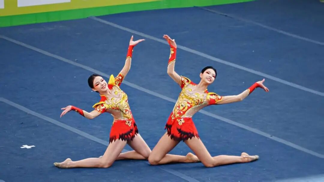 11月8日、22日,2025年全国啦啦操联赛桂林站(广西师范大学燕山校区体育馆)、南宁站(南宁市兴宁区昆仑大道首创奥特莱斯铜鼓广场)相继开赛。广西体校学子韦春丽、李园春面对全国强队与紧凑赛程,沉着应战、稳扎稳打,以精准流畅的动作、默契无间的配合、极具张力的表现,将爵士啦啦操的力与美完美融合,先后斩获公开少年甲组双人爵士自选动作冠军,实现双星连冠,用实力诠释了体育生的坚韧拼搏精神。